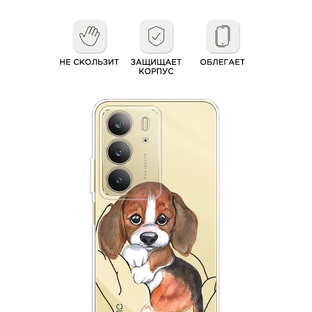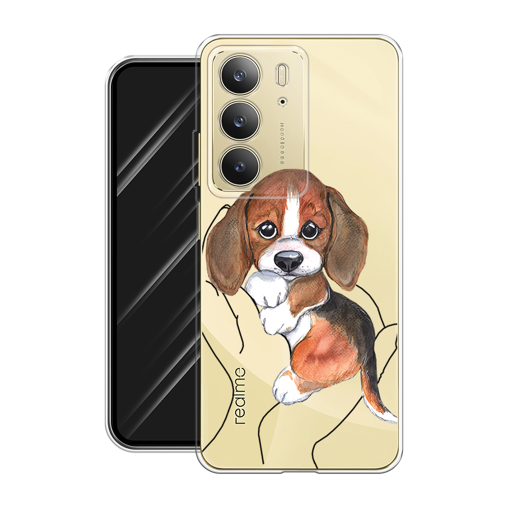 Купить Чехол на Realme C75 4G / Реалми C75 4G с принтом Бигль в ладошках, прозрачный