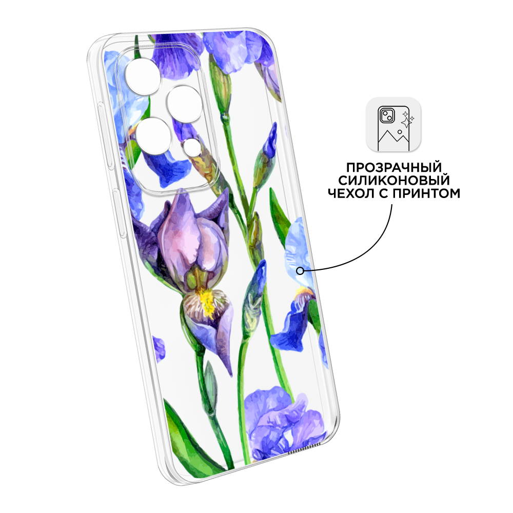СохранитьЧехол на Realme C75 4G / Реалми C75 4G с принтом Синие ирисы, прозрачный интересное: