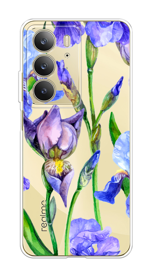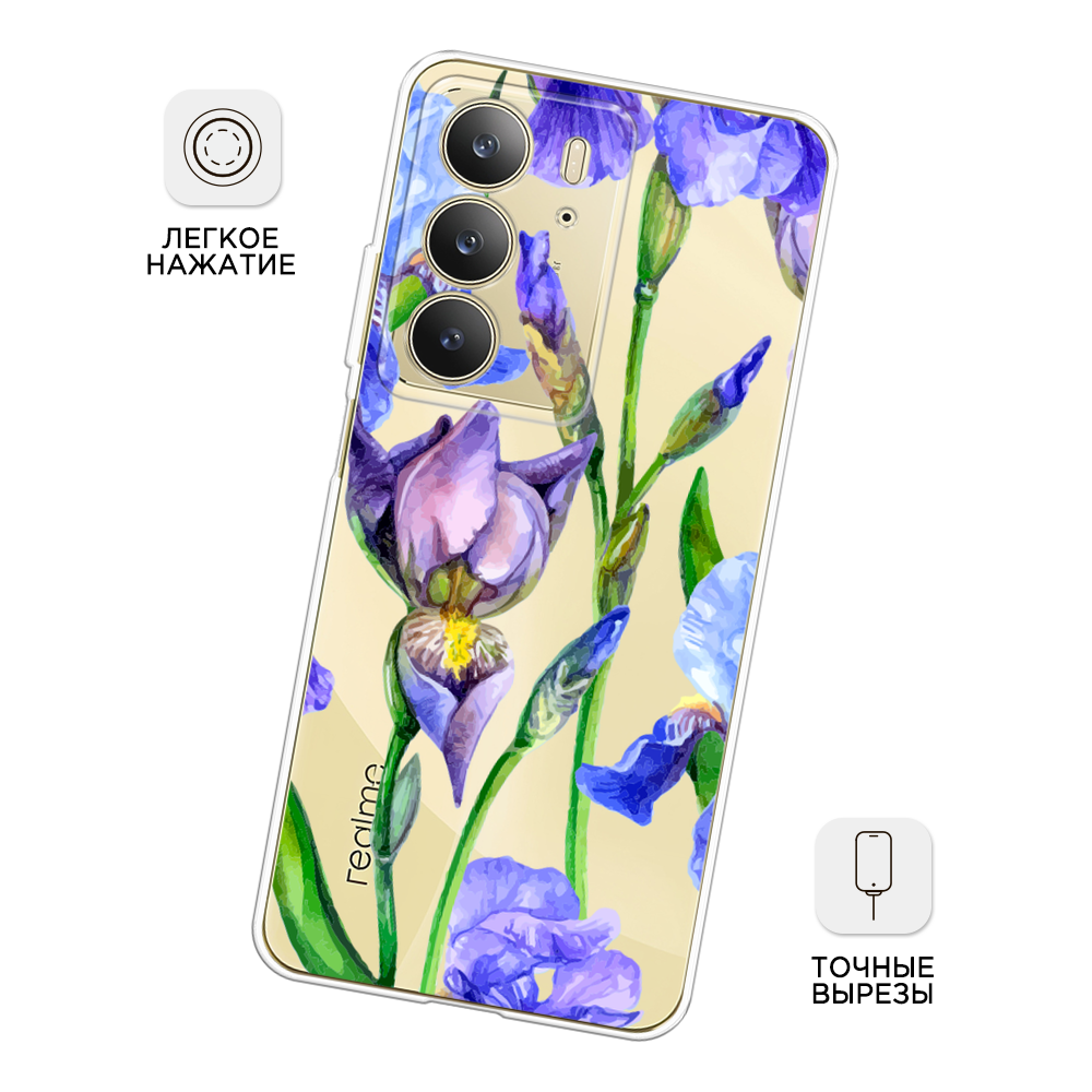Купить Чехол на Realme C75 4G / Реалми C75 4G с принтом Синие ирисы, прозрачный