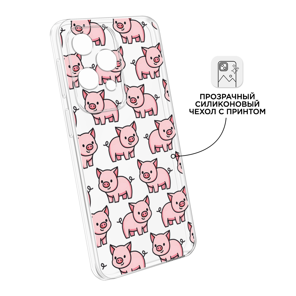 СохранитьЧехол на Realme C75 4G / Реалми C75 4G с принтом Веселые поросята, прозрачный интересное: