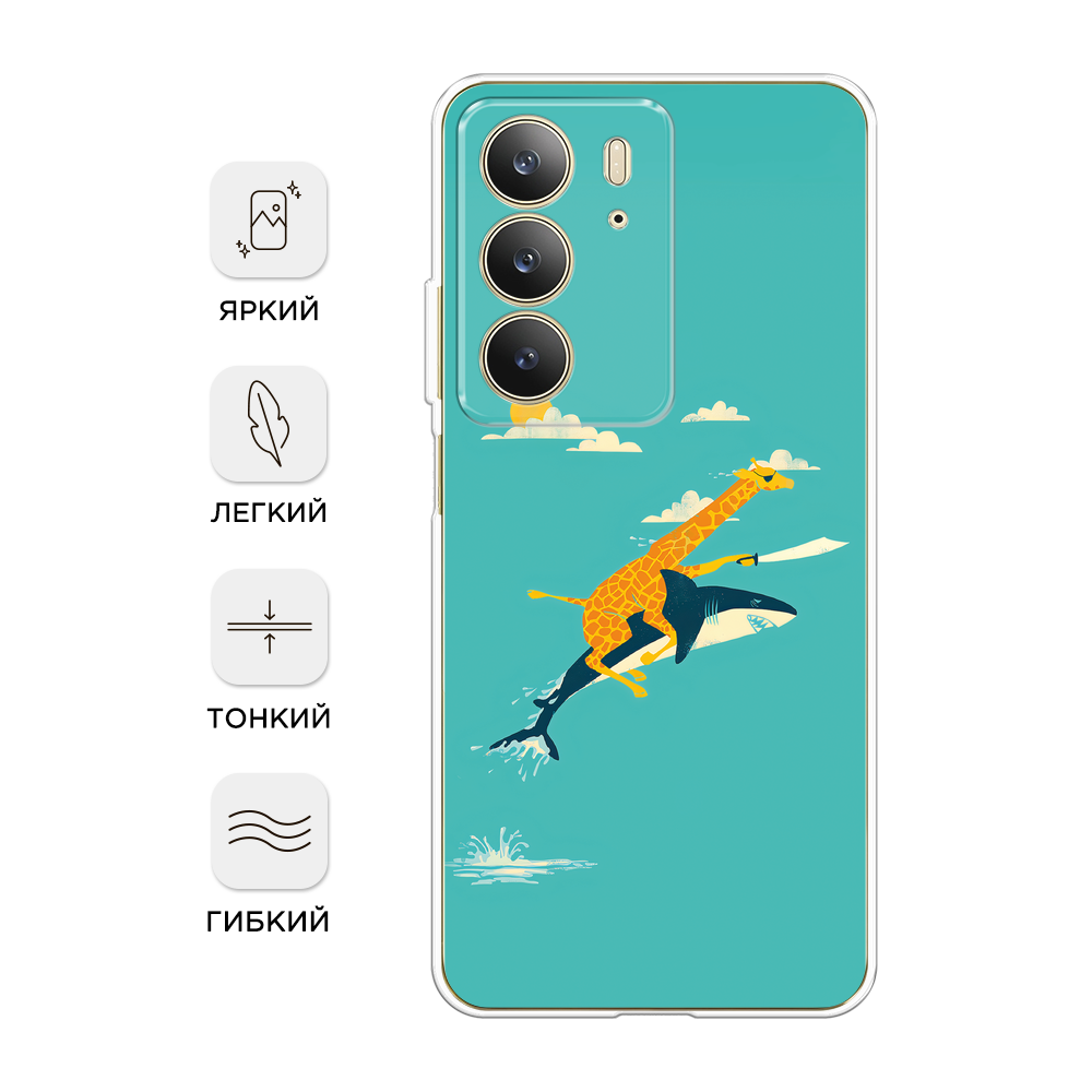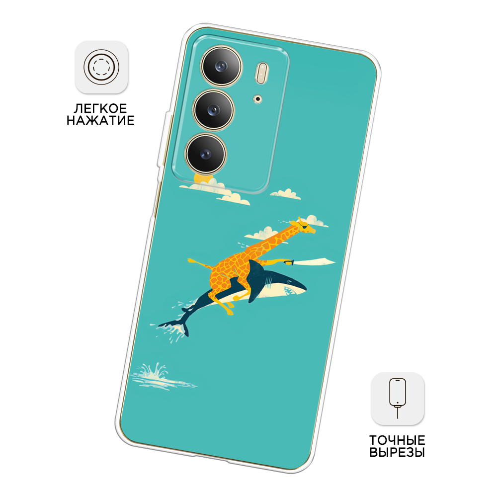 СохранитьЧехол на Realme C75 4G / Реалми C75 4G с принтом Жираф на акуле интересное: