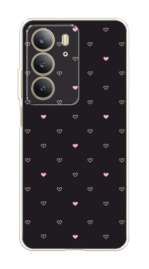 СохранитьЧехол на Realme C75 4G / Реалми C75 4G с принтом Черный фон и сердечки интересное: