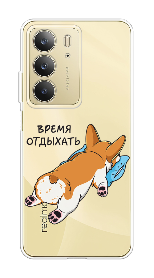 Купить Чехол на Realme C75 4G / Реалми C75 4G с принтом Корги отдыхает, прозрачный