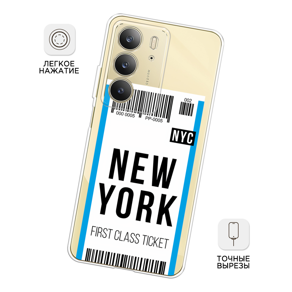 СохранитьЧехол на Realme C75 4G / Реалми C75 4G с принтом Билет в Нью-Йорк, прозрачный интересное:
