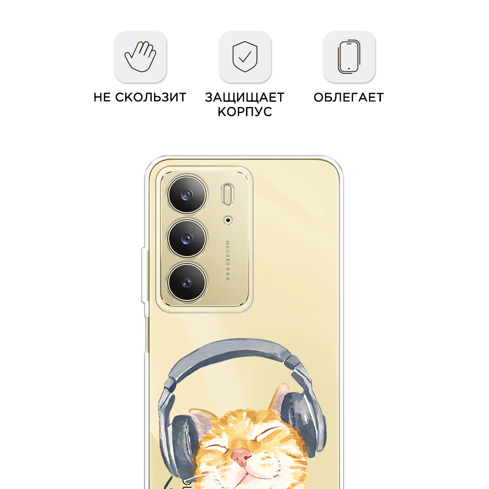 Купить Чехол на Realme C75 4G / Реалми C75 4G с принтом Кот меломан, прозрачный