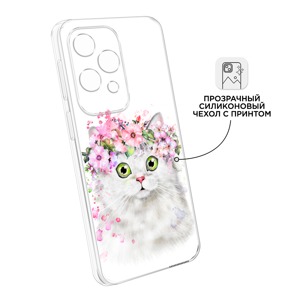 СохранитьЧехол на Realme C75 4G / Реалми C75 4G с принтом Белая кошка с цветами интересное: