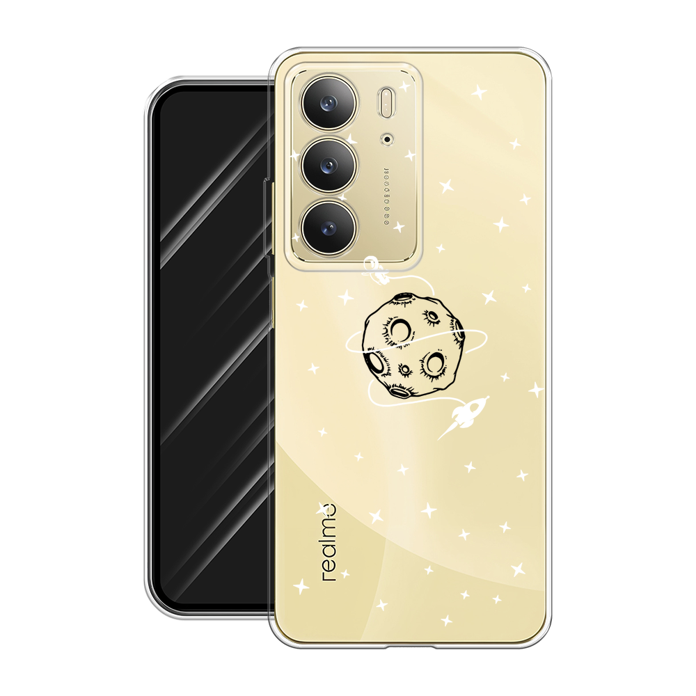 Купить Чехол на Realme C75 4G / Реалми C75 4G с принтом Полет вокруг луны, прозрачный