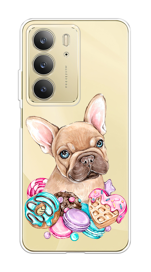 Купить Чехол на Realme C75 4G / Реалми C75 4G с принтом Бульдог и сладости, прозрачный