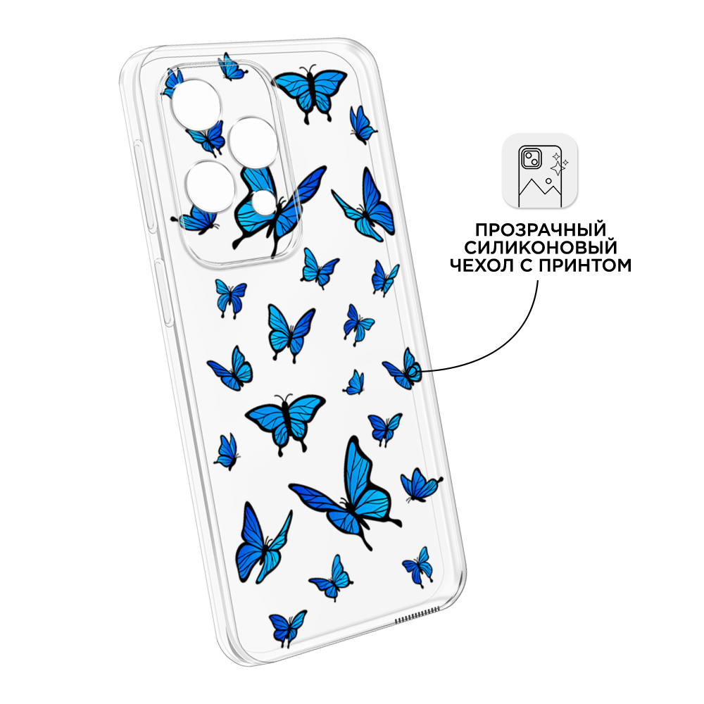СохранитьЧехол на Realme C75 4G / Реалми C75 4G с принтом Синие бабочки, прозрачный интересное: