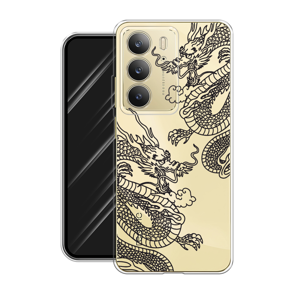 СохранитьЧехол на Realme C75 4G / Реалми C75 4G с принтом Два китайских дракона, прозрачный интересное: