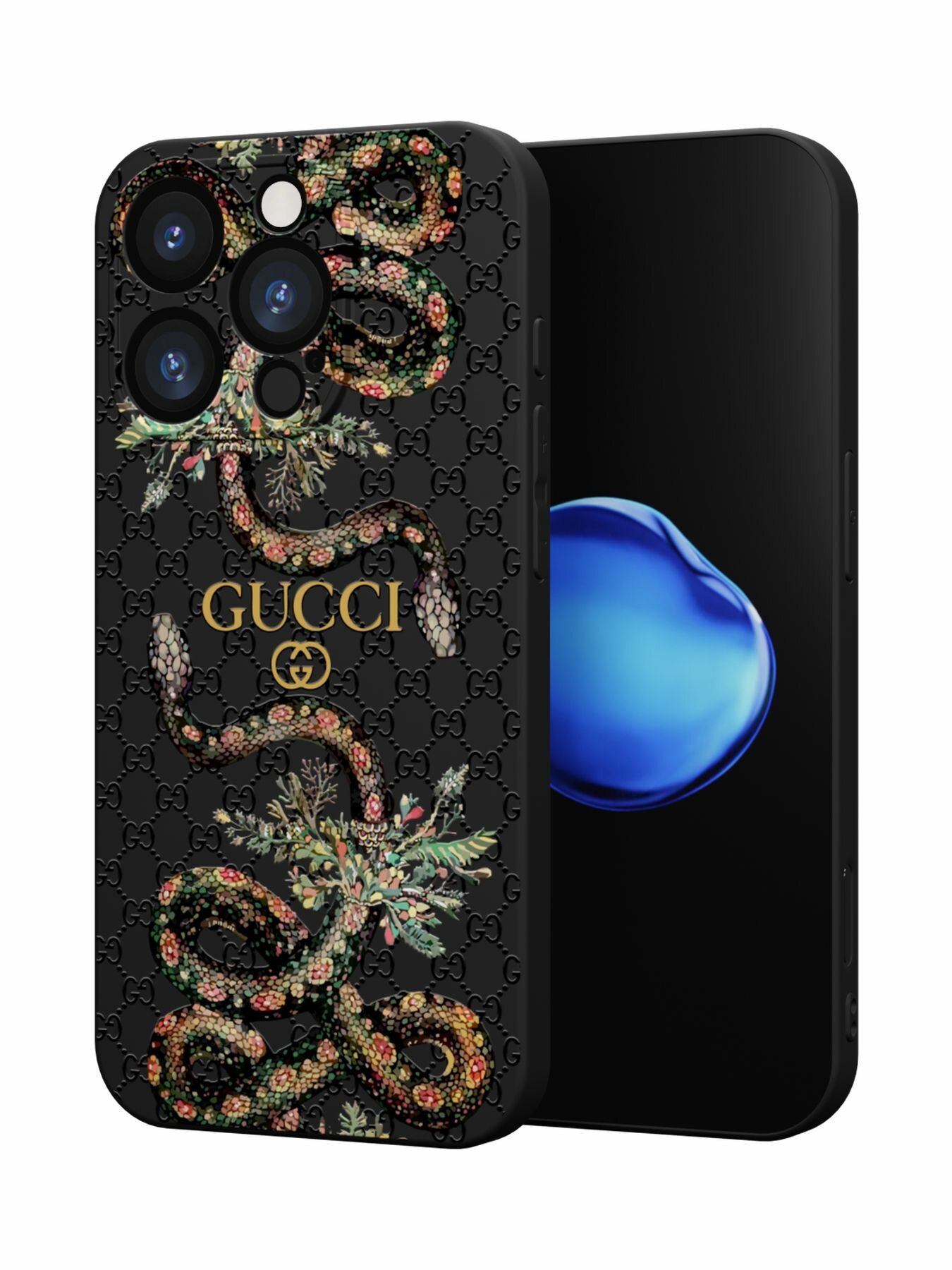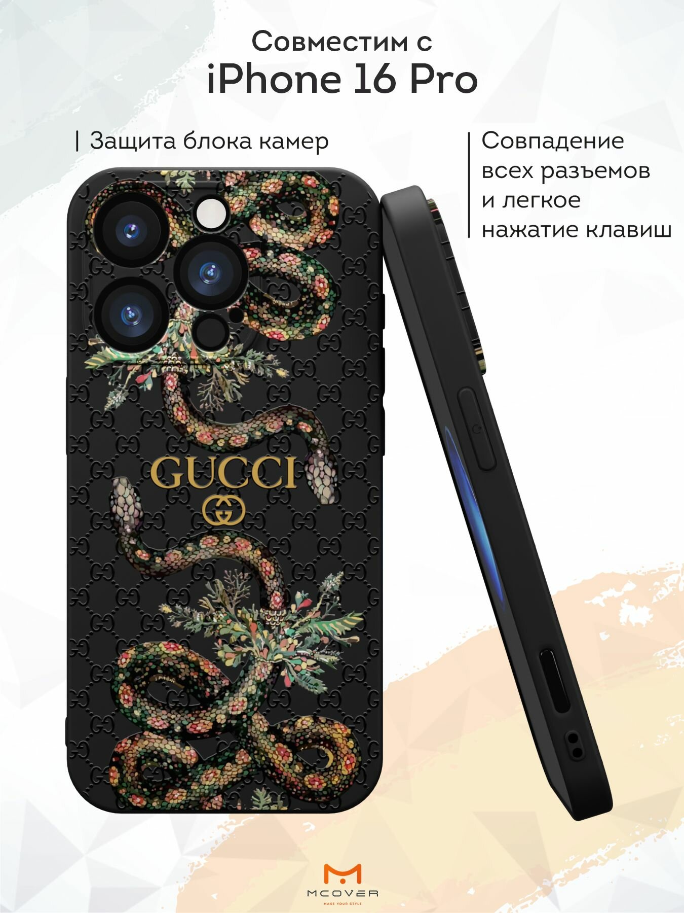 СохранитьЧехол Mcover с рисунком Гуччи змеи на iPhone 16 Pro, силиконовый, матовый, защита камеры интересное: