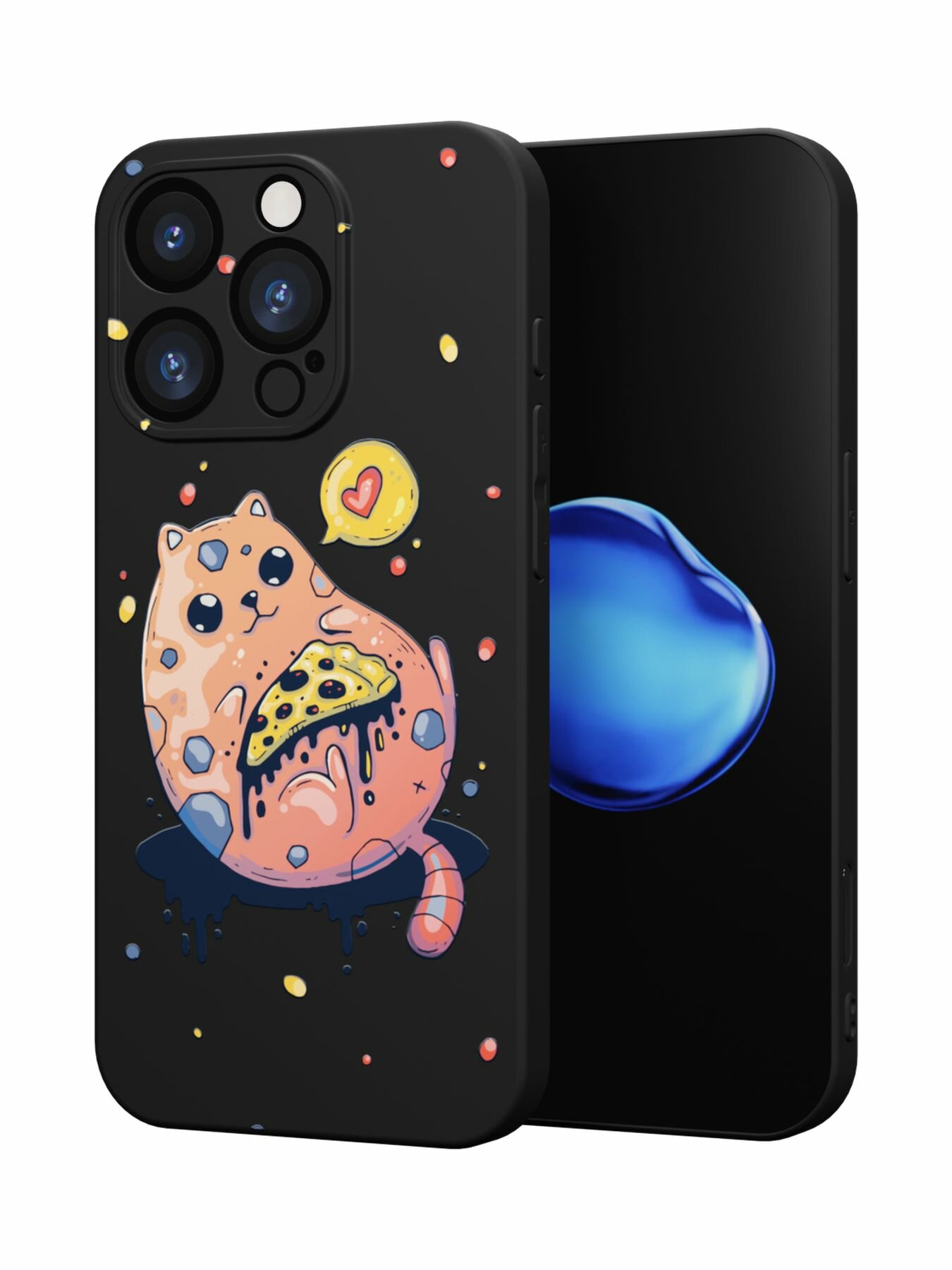 СохранитьЧехол Mcover с рисунком Космо-кот с пиццей на iPhone 16 Pro, силиконовый, матовый, защита камеры интересное: