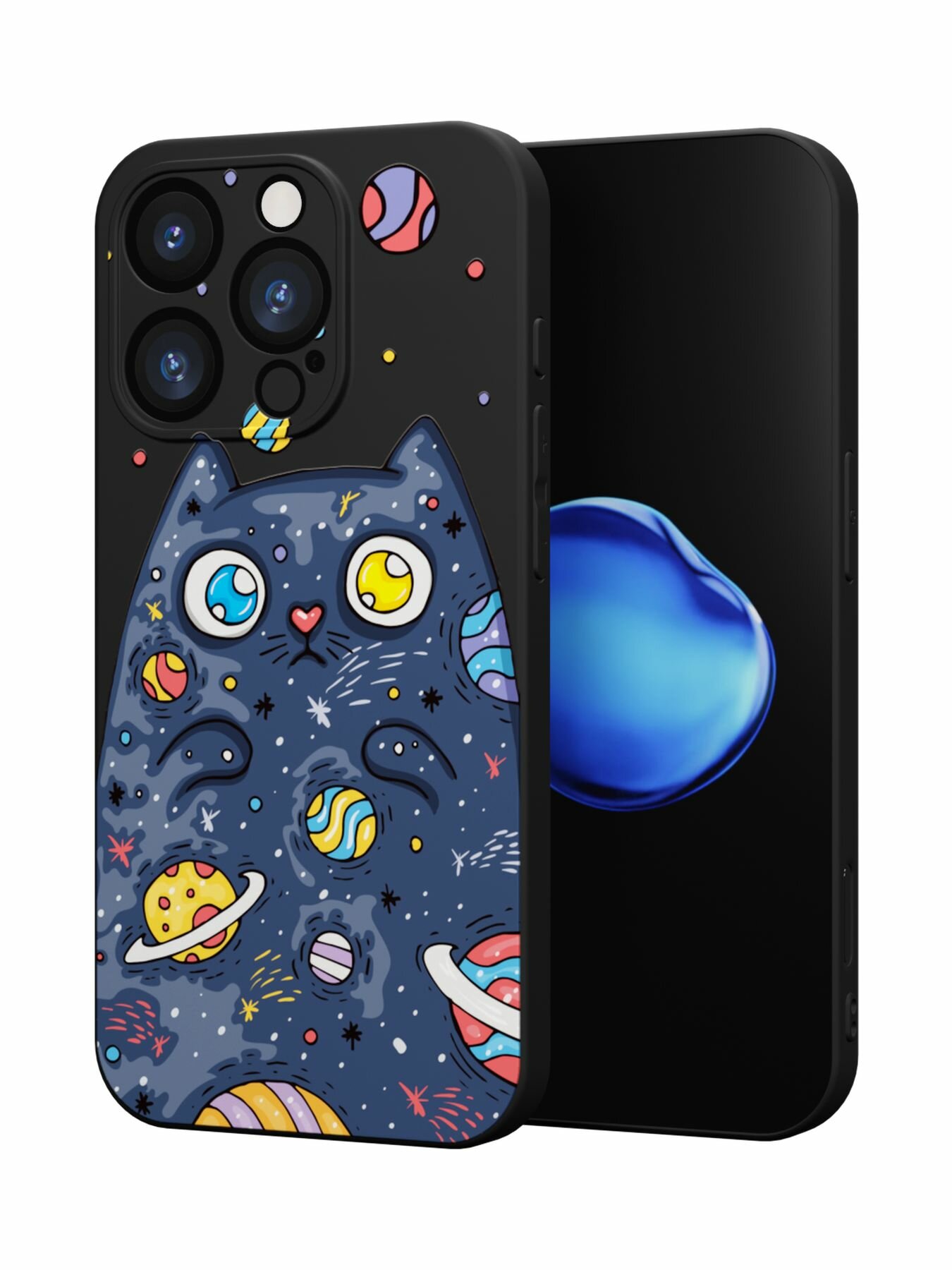 СохранитьЧехол Mcover с рисунком Космический кот на iPhone 16 Pro, силиконовый, матовый, защита камеры интересное: