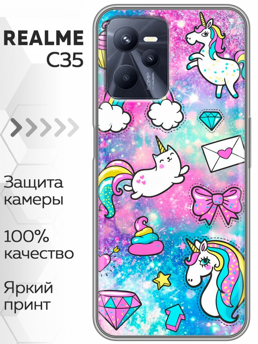 Купить Чехол для Realme C35 с принтом Единороги для девочки на Реалми С35