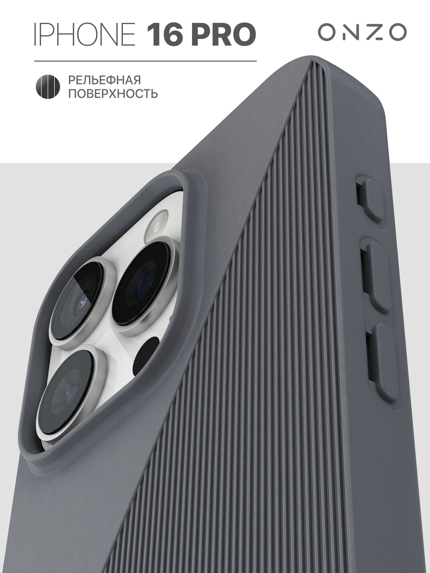 Купить Защитный бампер на iPhone 16 Pro / Чехол на Айфон 16 Про ребристый, серый