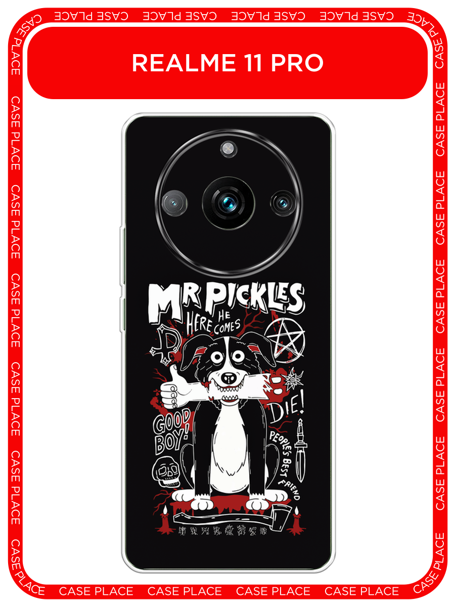 СохранитьСиликоновый чехол на Realme 11 Pro / Реалми 11 Про с принтом Mr Pickles интересное: