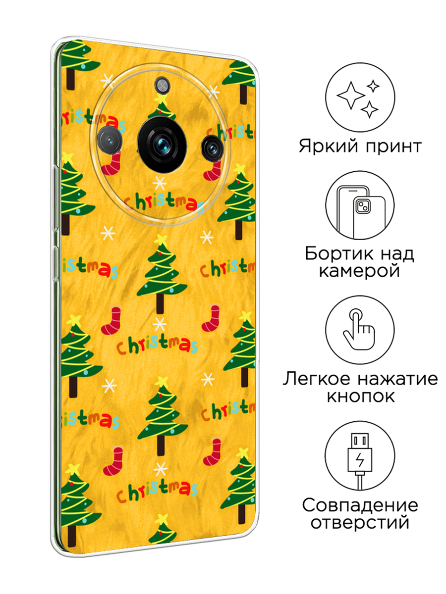 СохранитьЧехол на Realme 11 Pro / Реалми 11 Про с принтом Ёлочки на жёлтом паттерн интересное: