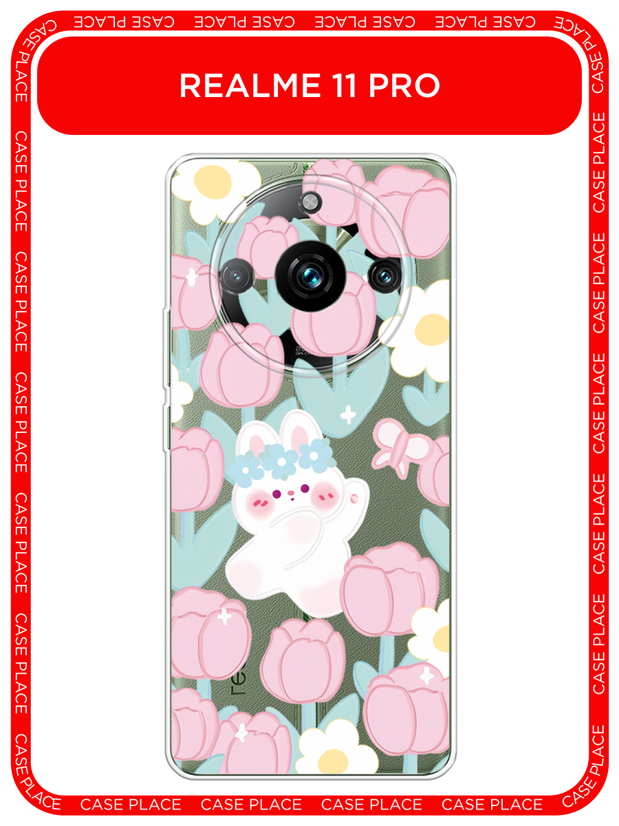 СохранитьЧехол на Realme 11 Pro / Реалми 11 Про с принтом Зайка в тюльпанах, прозрачный интересное:
