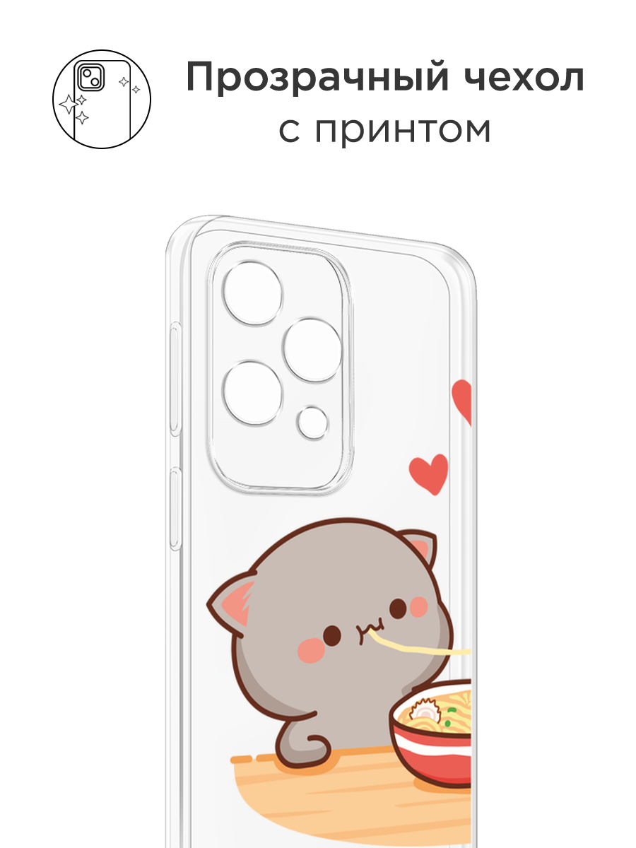 СохранитьЧехол на Realme 11 Pro / Реалми 11 Про с принтом Чёрный котик с лапшой, прозрачный интересное: