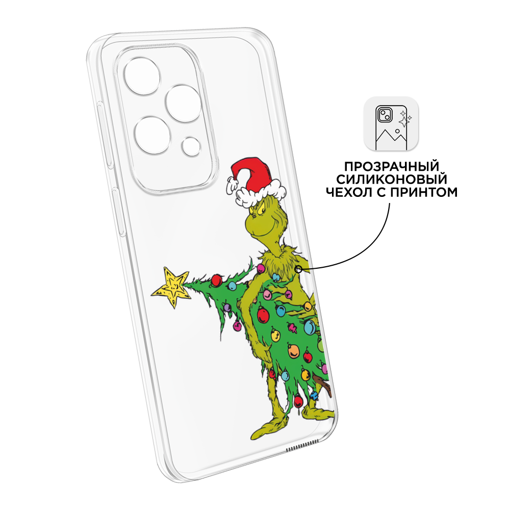 СохранитьЧехол на Tecno Spark 30 / Текно Спарк 30 с принтом Гринч с ёлкой 2, прозрачный интересное: