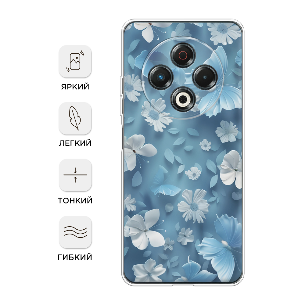 СохранитьЧехол на Tecno Spark 30 / Текно Спарк 30 с принтом Голубые глазурные цветы интересное: