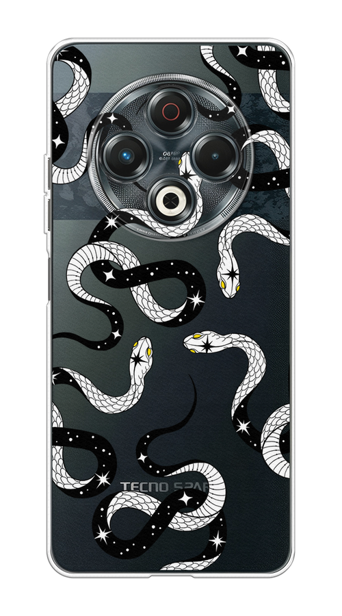 Купить Чехол на Tecno Spark 30 / Текно Спарк 30 с принтом Чёрно-белые змеи паттерн, прозрачный