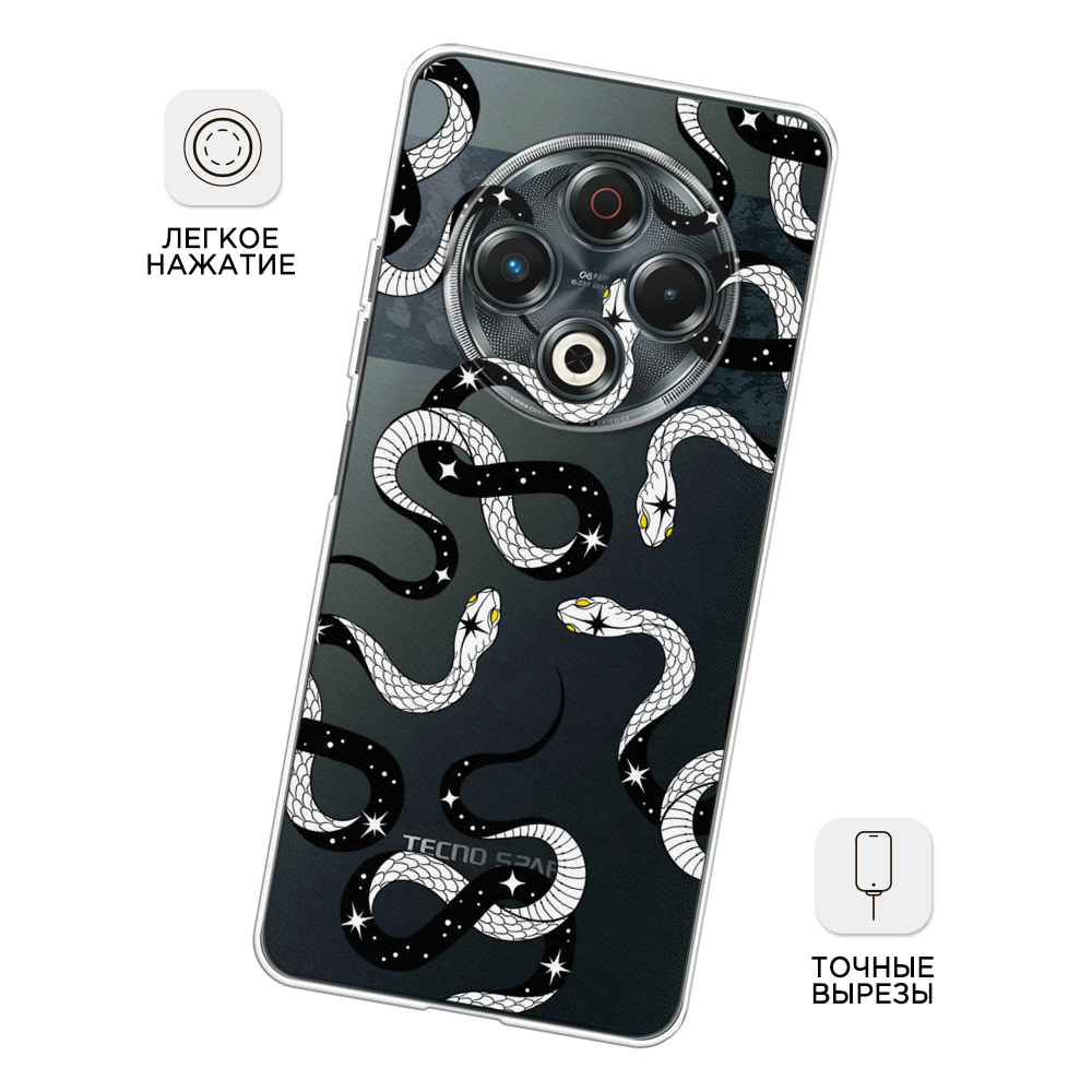 СохранитьЧехол на Tecno Spark 30 / Текно Спарк 30 с принтом Чёрно-белые змеи паттерн, прозрачный интересное: