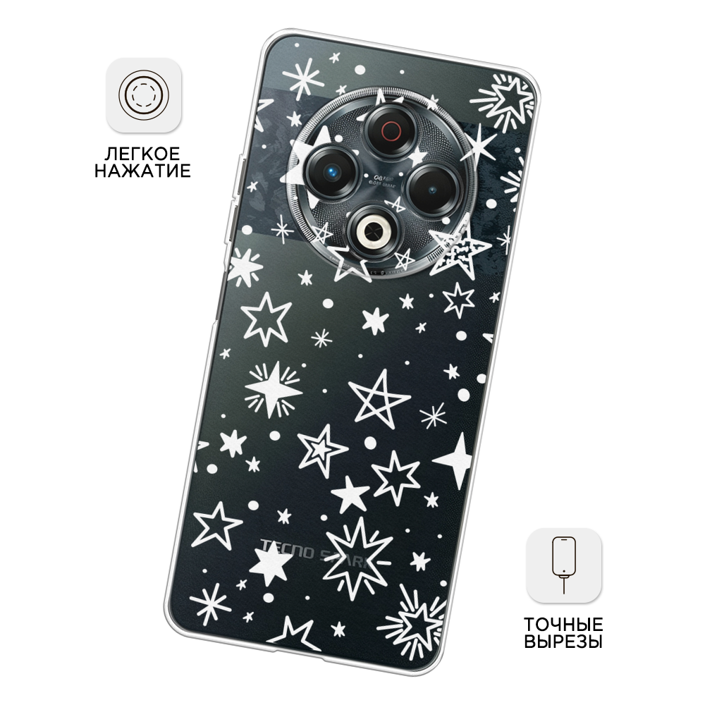 СохранитьЧехол на Tecno Spark 30 / Текно Спарк 30 с принтом Звездочки графика белая, прозрачный интересное: