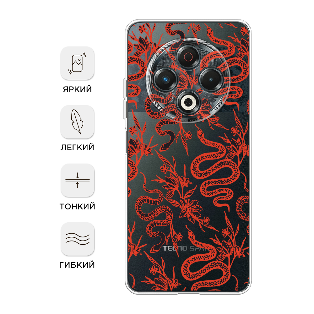 Купить Чехол на Tecno Spark 30 / Текно Спарк 30 с принтом Цветы и змеи красные 2, прозрачный