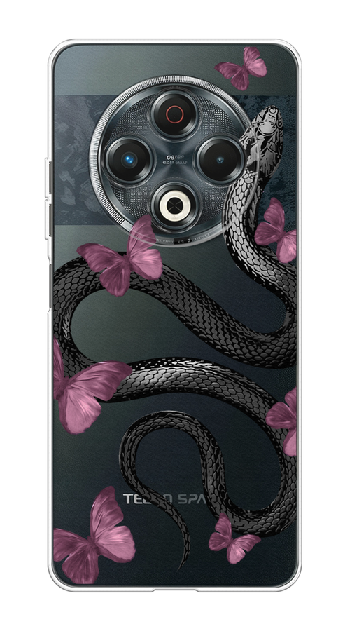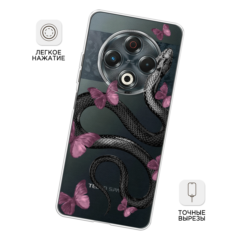 Купить Чехол на Tecno Spark 30 / Текно Спарк 30 с принтом Змея и бабочки, прозрачный