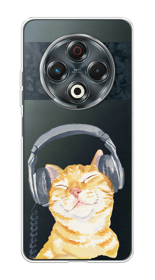 Купить Чехол на Tecno Spark 30 / Текно Спарк 30 с принтом Кот меломан, прозрачный