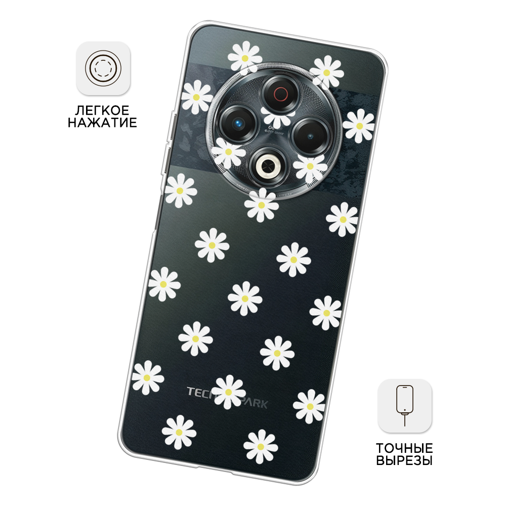 Купить Чехол на Tecno Spark 30 / Текно Спарк 30 с принтом Маленькие ромашки, прозрачный