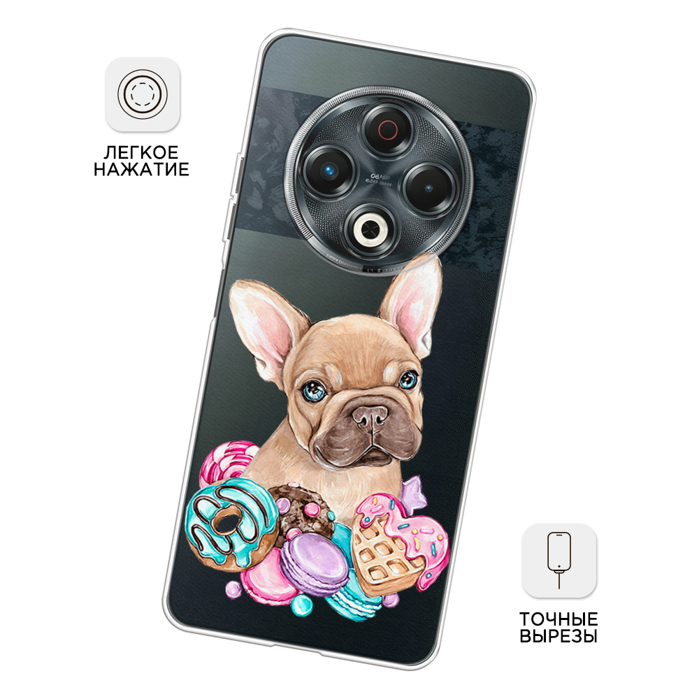 Купить Чехол на Tecno Spark 30 / Текно Спарк 30 с принтом Бульдог и сладости, прозрачный