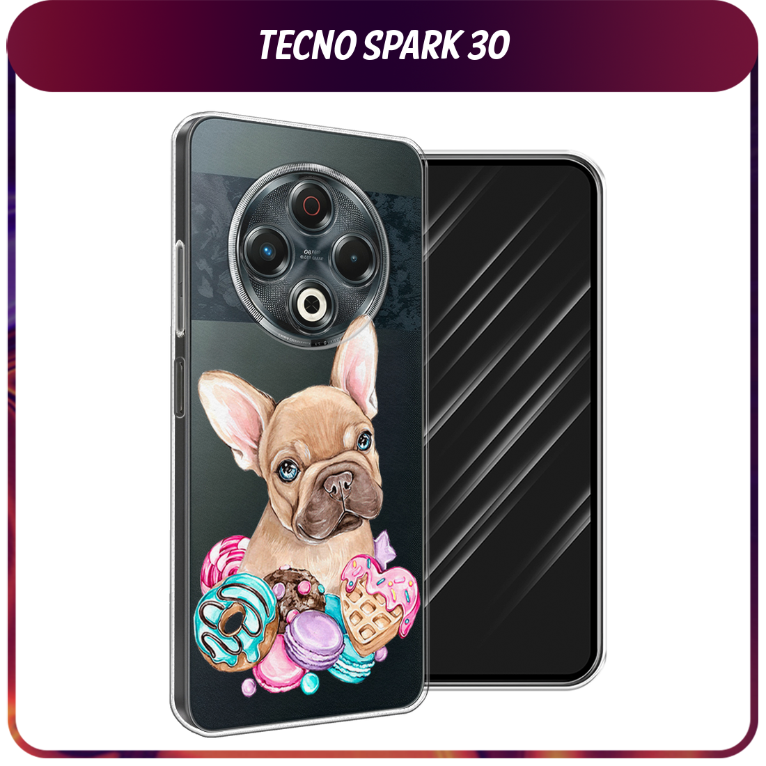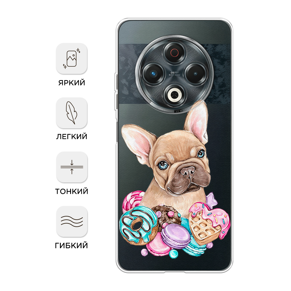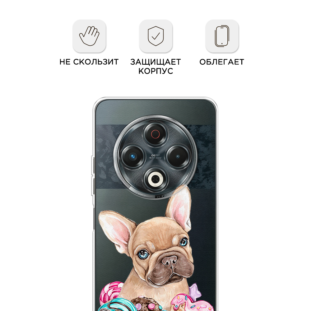 СохранитьЧехол на Tecno Spark 30 / Текно Спарк 30 с принтом Бульдог и сладости, прозрачный интересное: