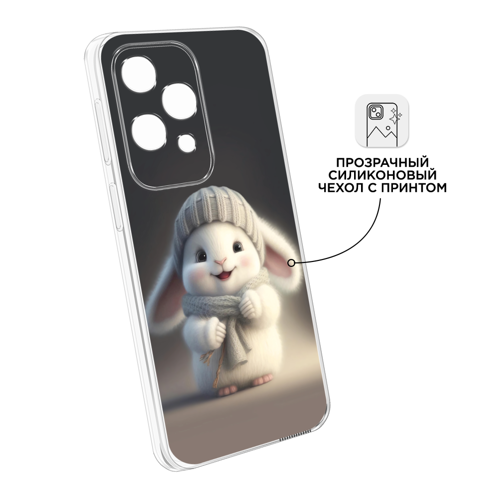СохранитьЧехол на Tecno Spark 30 / Текно Спарк 30 с принтом Белый крольчонок в шапке интересное: