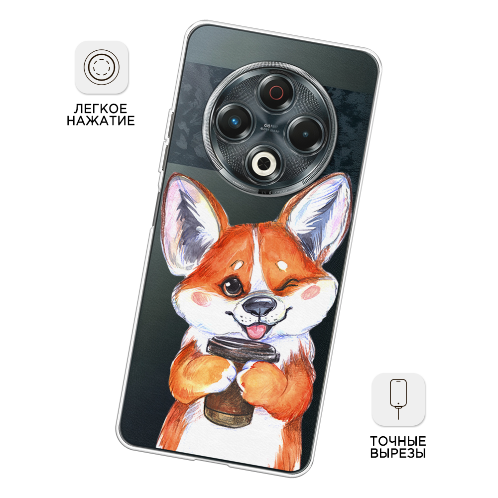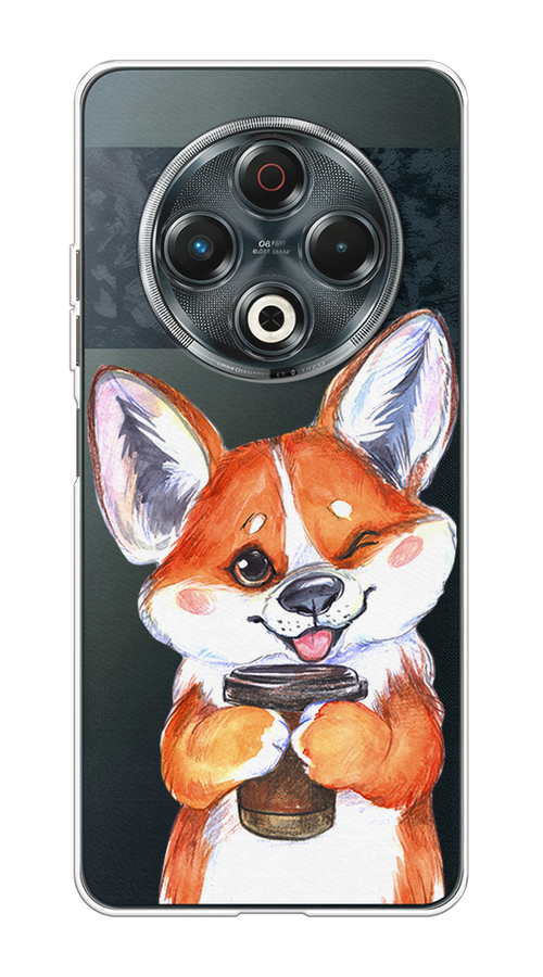 Купить Чехол на Tecno Spark 30 / Текно Спарк 30 с принтом Корги с кофе, прозрачный