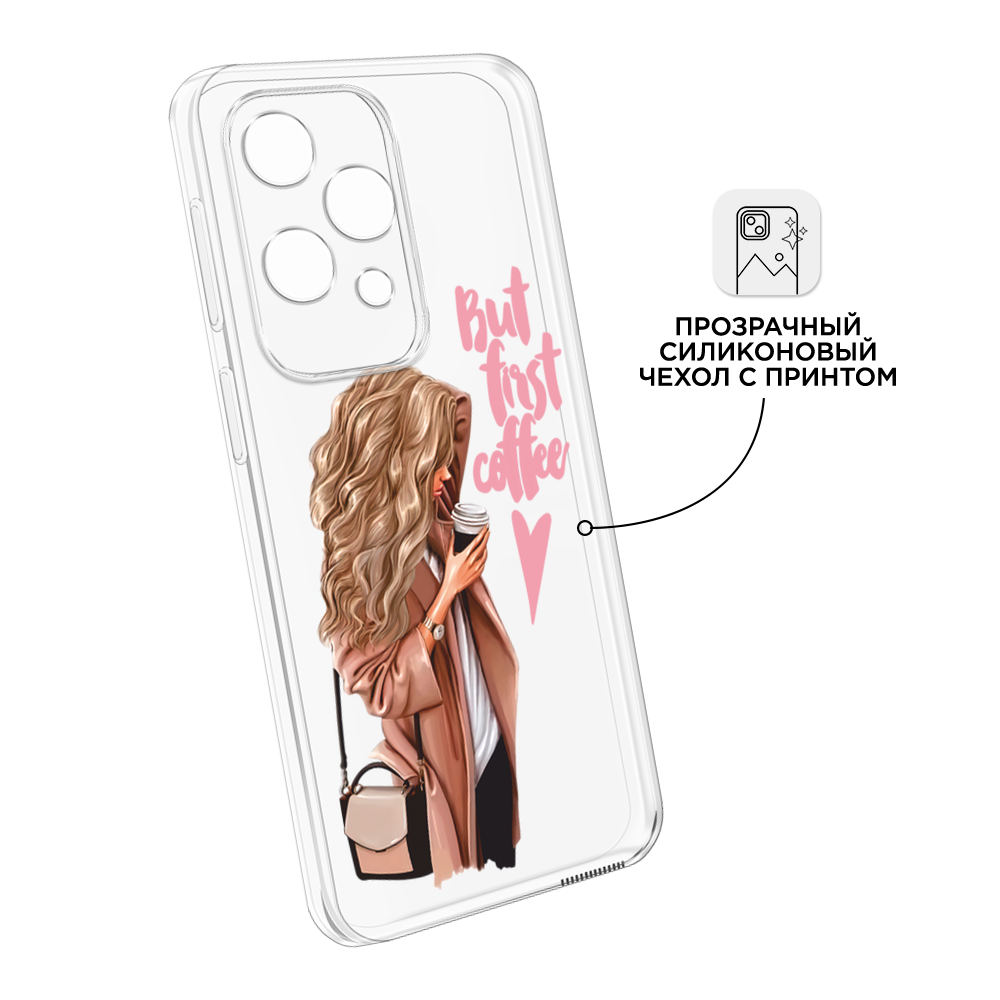 Купить Чехол на Tecno Spark 30 / Текно Спарк 30 с принтом Девушка с кофе, прозрачный