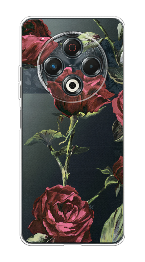 Купить Чехол на Tecno Spark 30 / Текно Спарк 30 с принтом Бордовые розы фон, прозрачный