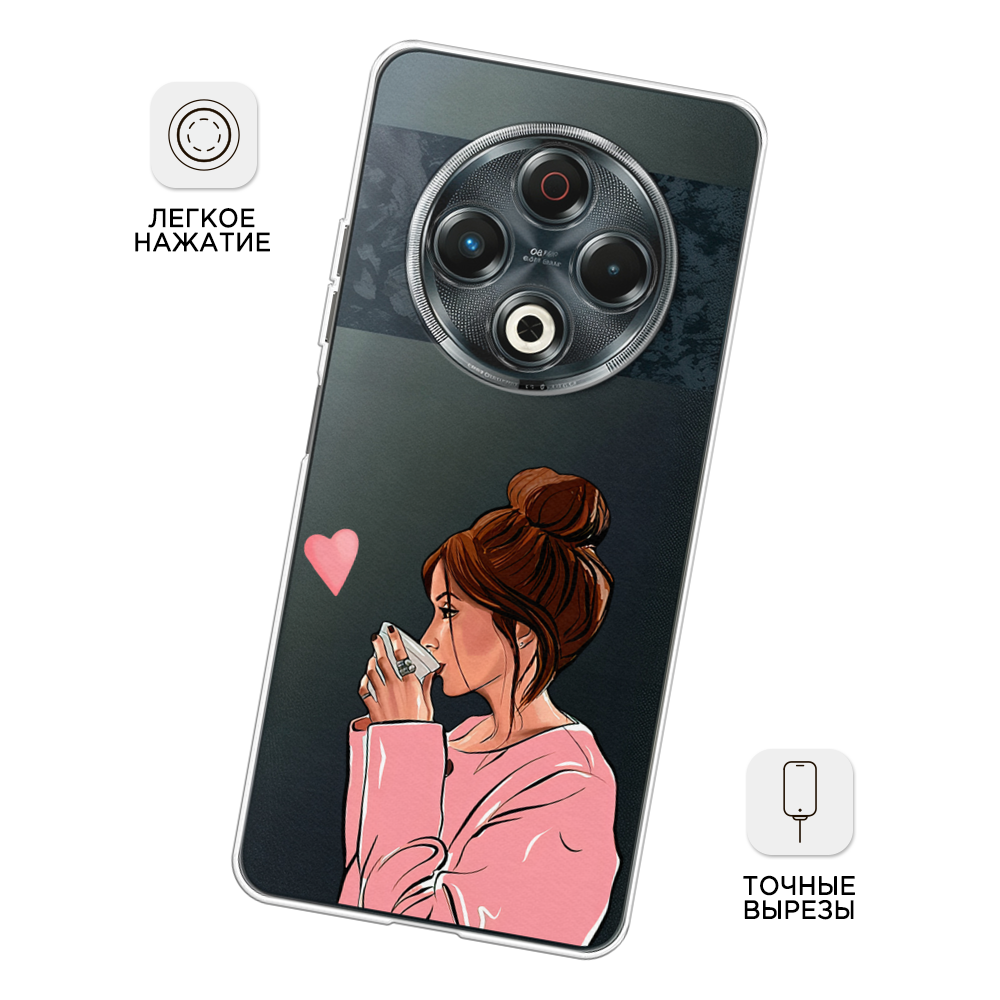 Чехол на Tecno Spark 30 / Текно Спарк 30 с принтом Девушка с кофе, прозрачный