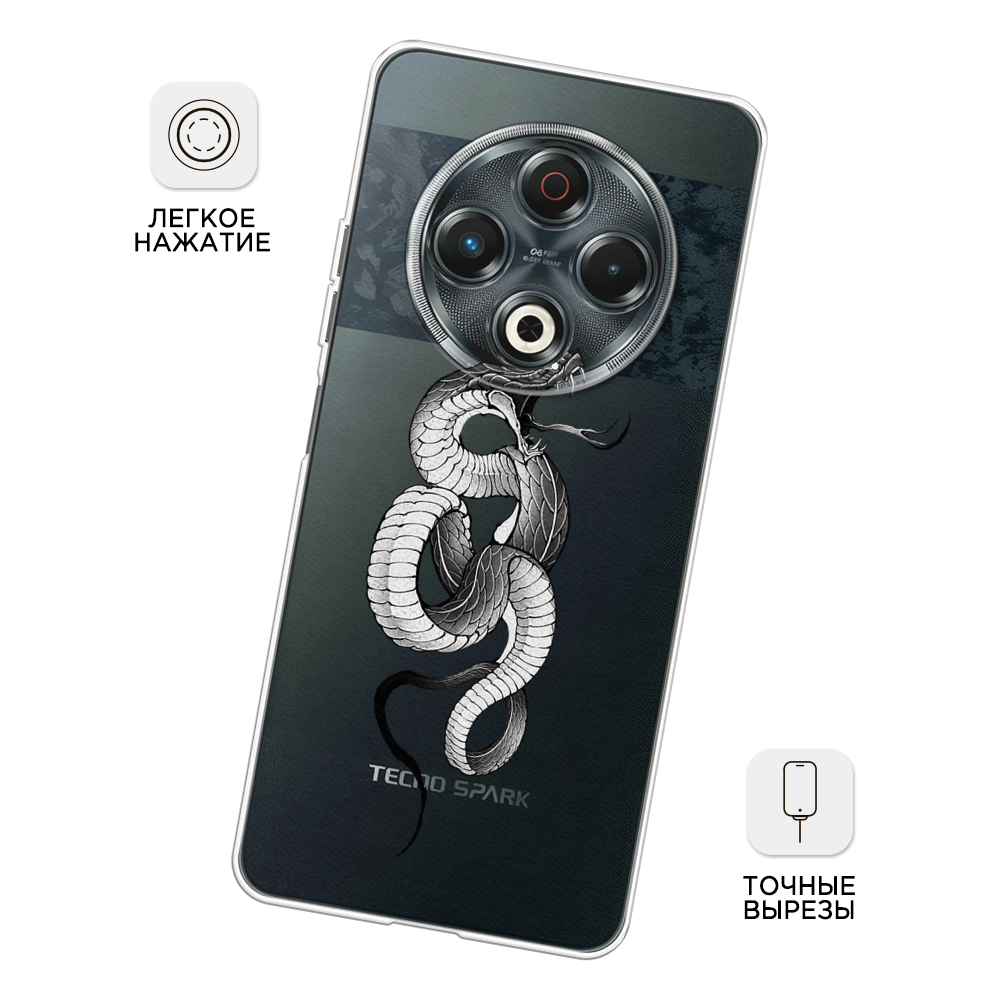 Купить Чехол на Tecno Spark 30 / Текно Спарк 30 с принтом Монохромная змея рисунок, прозрачный