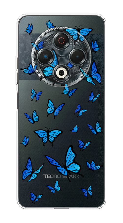 Купить Чехол на Tecno Spark 30 / Текно Спарк 30 с принтом Синие бабочки, прозрачный