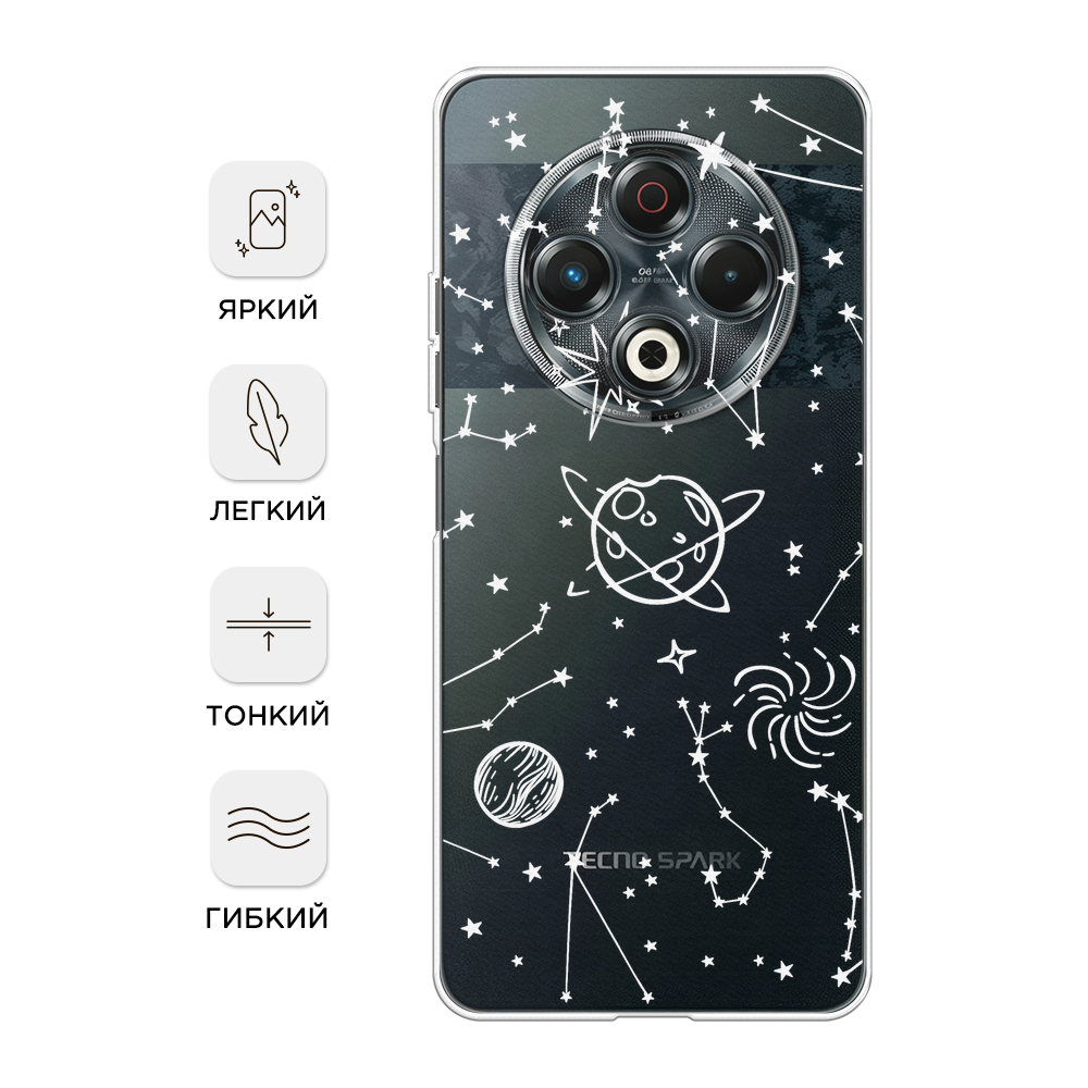 Чехол на Tecno Spark 30 / Текно Спарк 30 с принтом Созвездия, прозрачный
