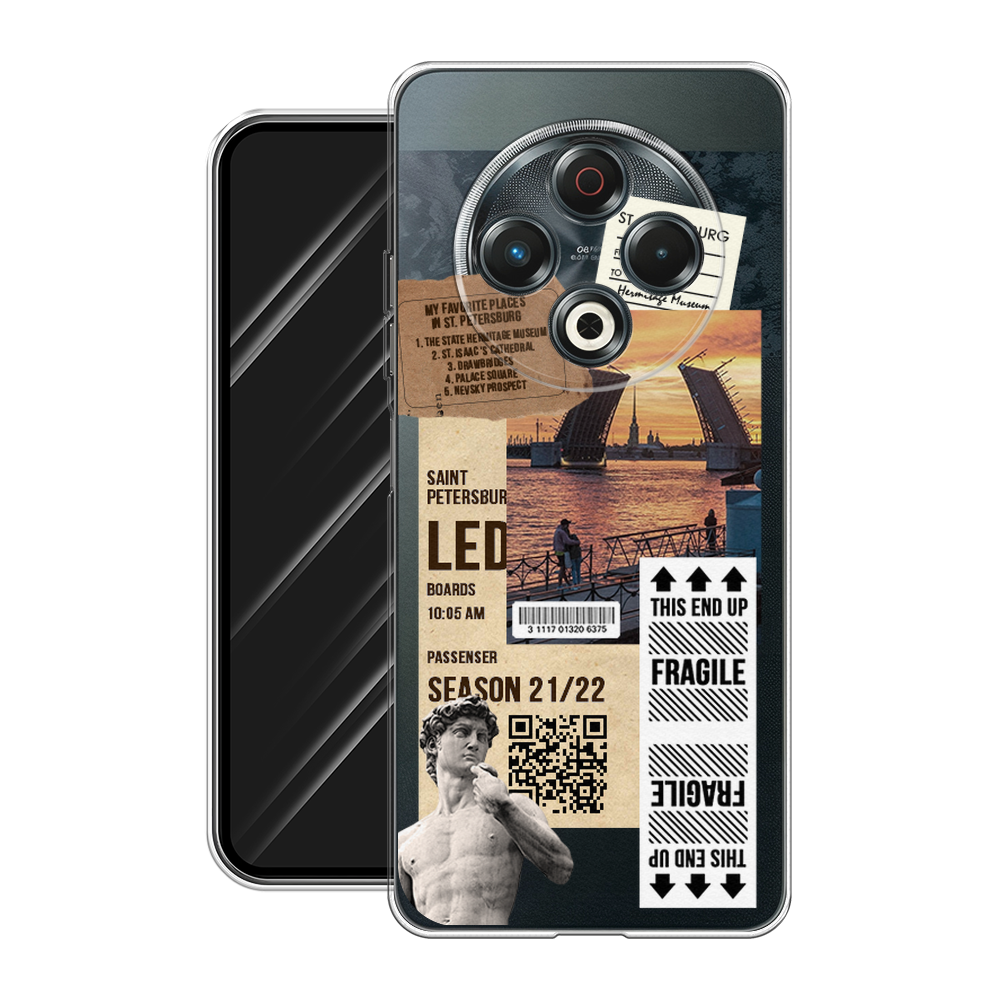 Купить Чехол на Tecno Spark 30 / Текно Спарк 30 с принтом Санкт-Петербург коллаж, прозрачный