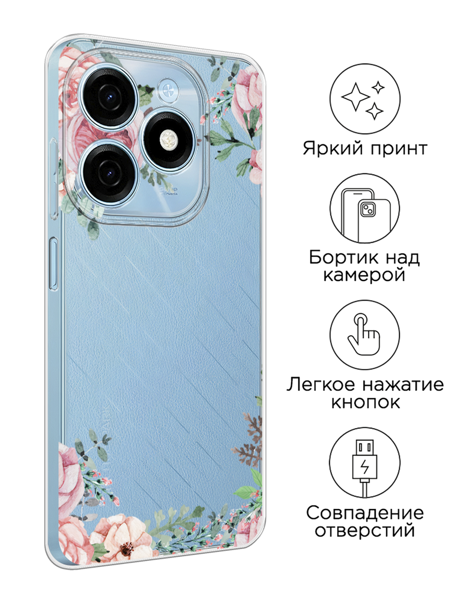СохранитьЧехол на Tecno Spark 20 / Текно Спарк 20 с принтом Нежные розы акварель, прозрачный интересное: