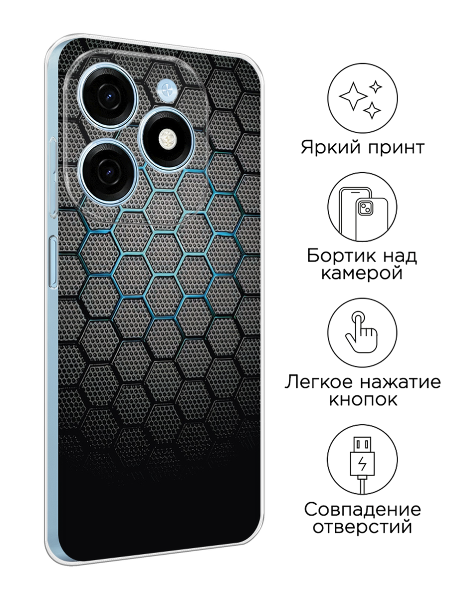 СохранитьЧехол на Tecno Spark 20 / Текно Спарк 20 с принтом Бирюзовые соты интересное: