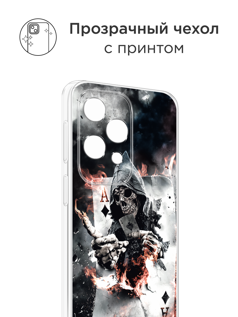 СохранитьЧехол на Tecno Spark 20 / Текно Спарк 20 с принтом Карты черепа в капюшоне интересное:
