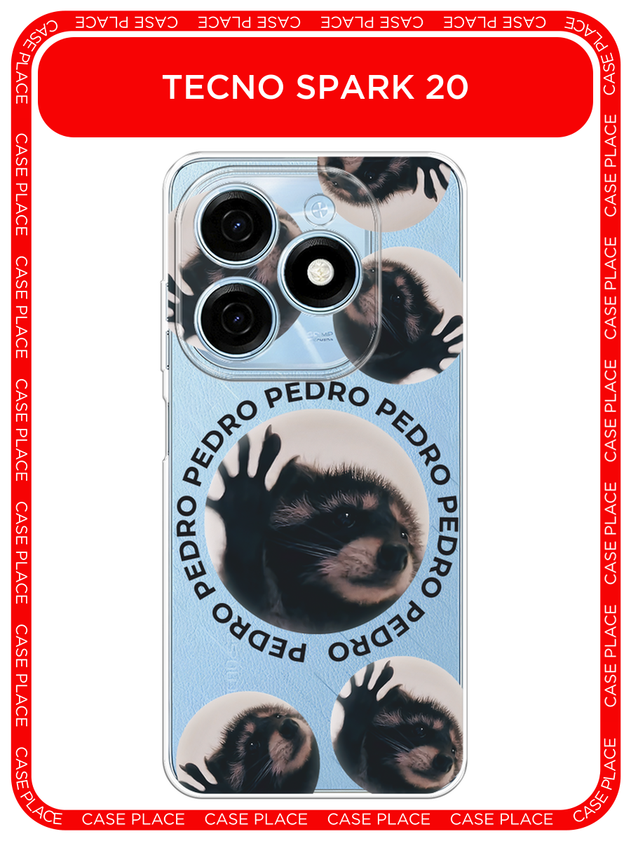 СохранитьЧехол на Tecno Spark 20 / Текно Спарк 20 с принтом Pedro енот, прозрачный интересное: