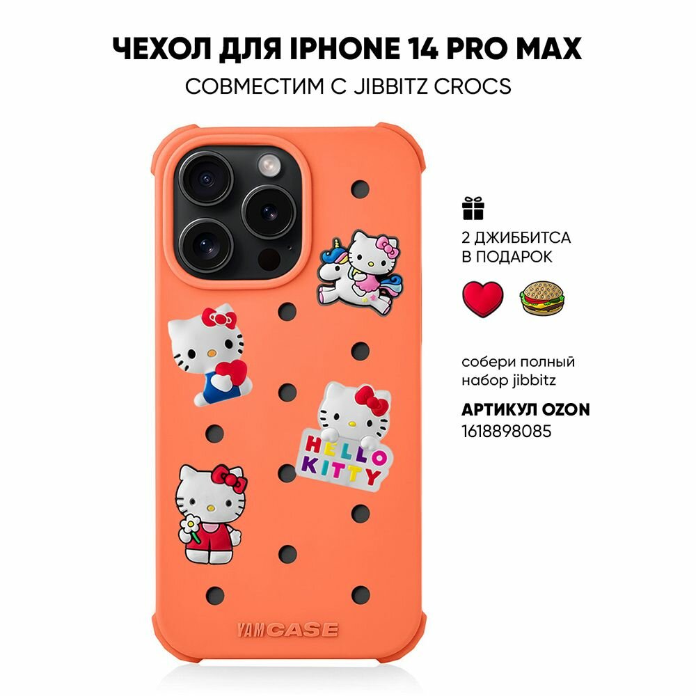 СохранитьЧехол на iPhone 14 Pro Max с принтом для jibbitz crocs оранжевый интересное: