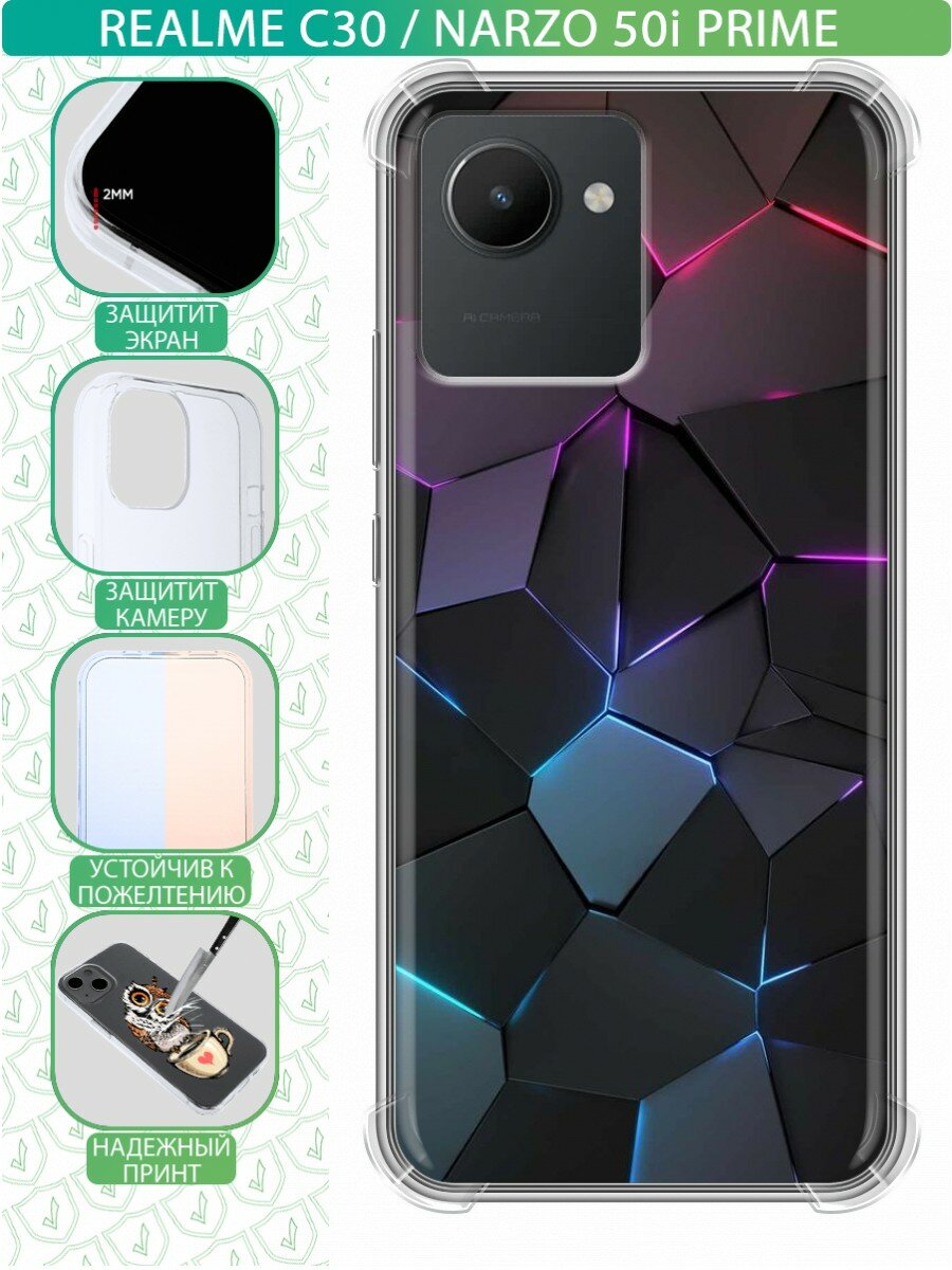 Купить Дизайнерский силиконовый с усиленными углами чехол для Реалме С30 / Realme C30 Геометрия неона