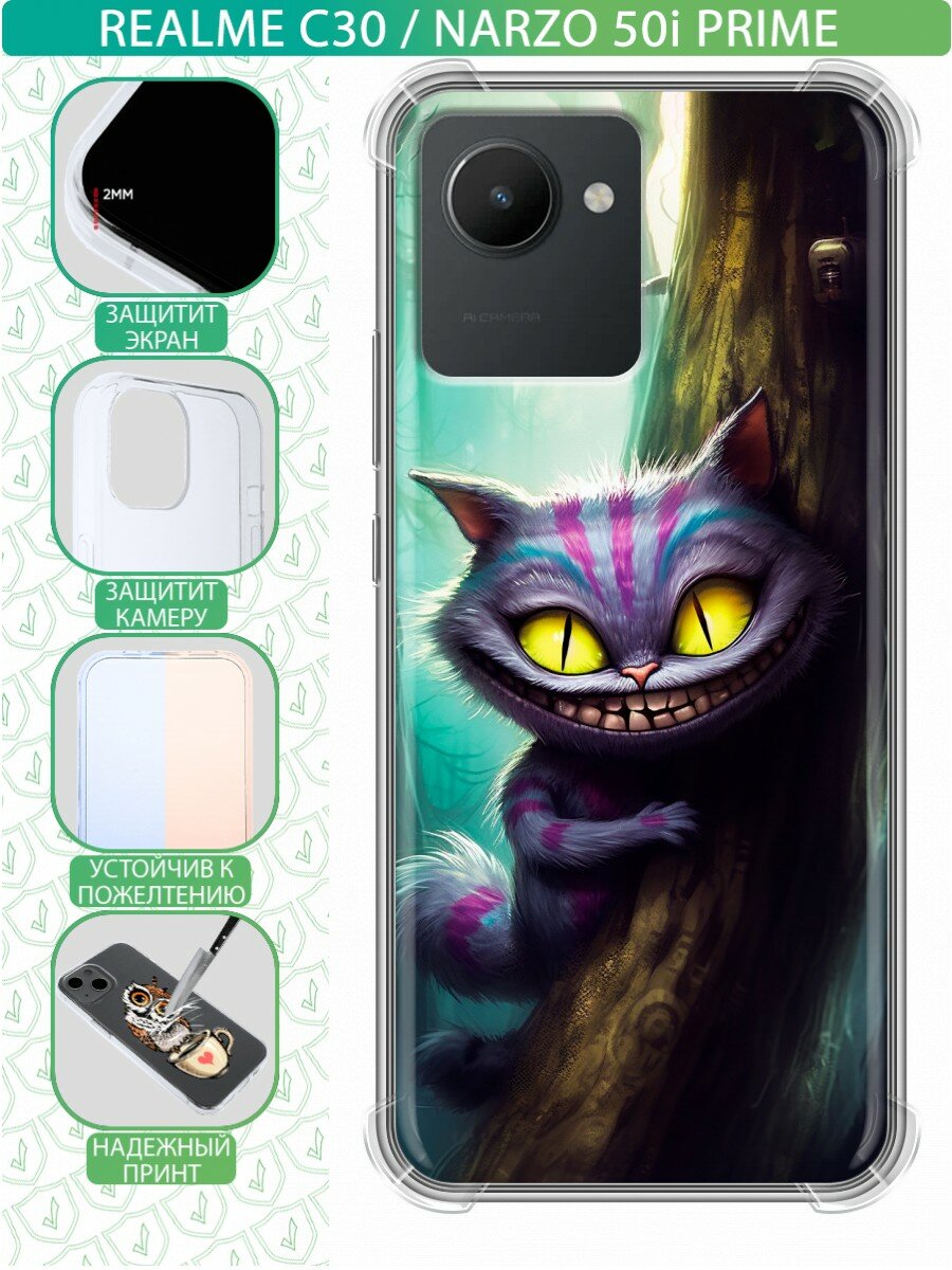 СохранитьДизайнерский силиконовый с усиленными углами чехол для Реалме С30 / Realme C30 Сказочный кот интересное: